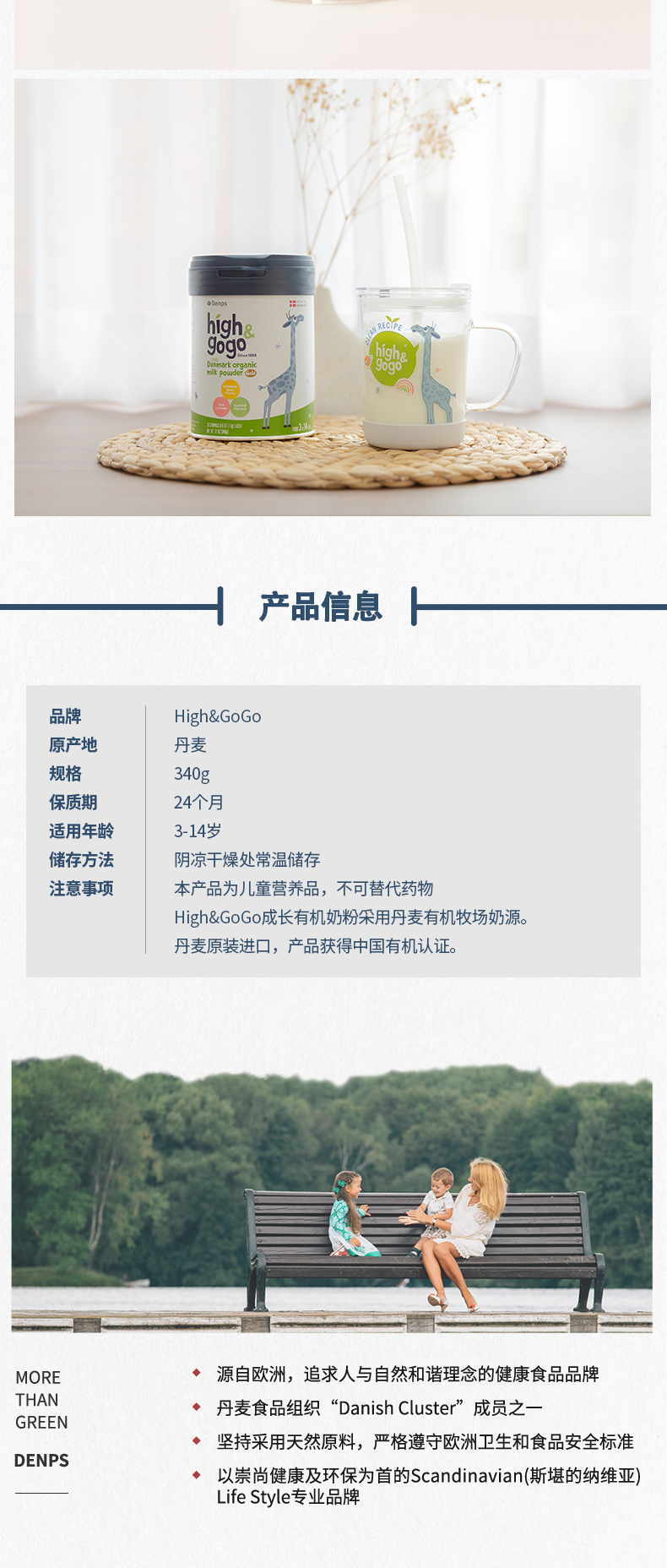 京东丹麦国家馆入驻品牌——Denps丹普斯 High&GoGo,是Denps丹普斯专为成长期儿童设立的食品品牌,以"有机"、"儿童健康成长"、"Clean Recipe(清洁配方)"的理念向全世界消费者提供产品。 其代表性产品——High&GoGo有机儿童成长奶粉,专为3—14岁儿童研发,科学助力孩子健康长高。