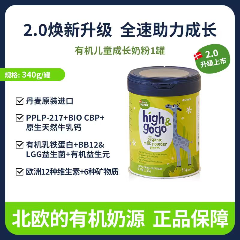 Denps Highgogo丹麦原装进口有机儿童成长牛奶粉1盒装3.0升级版