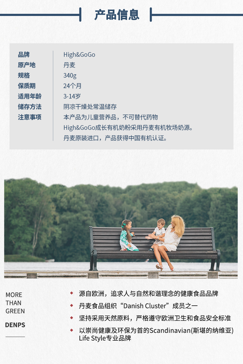 Denps Highgogo丹麦原装进口有机儿童成长牛奶粉1盒装 2.0新品